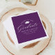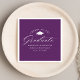 Núcleos de graduação elegantes apresentando um boné de formatura com a frase "Saúde ao Formando" em um roteiro de caligrafia branca sobre fundo roxo. Personalize os guardanapos roxos com o nome do formando, o nome da escola e o ano de graduação. Os guardanapos de graduação simples são perfeitos para usar para o seu segundo grau ou formandos.