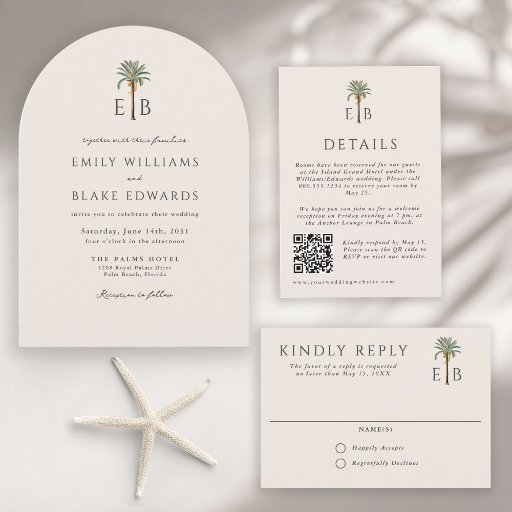 Palm Logo Simple Elegant Monogram Wedding SuiteCriado por Susan Frazier
