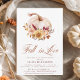 Celebrar a noiva com este elegante chá de panela Fall in Love, com abóboras brancas, laranja queimada e terracotta florais, grama-pampas, florais de marsala e bagas de trigo. Uma bela mistura de charme rústico e de botânicos de outono, perfeitos para o campo ou eventos temáticos de colheita. Facilmente personalizável para a sua celebração do outono.