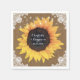 Personalize facilmente estes guardanapos florais rústicos de papel floral apresentando um girassol em uma pá e um fundo de renda adornados com luzes de cordas para decorar seu país rústico/quintal/jardim/jardim/celeiro verão ou mesas de festas casamentos outono.