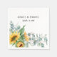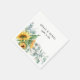 Girassol e eucalipto russos e elegantes em guardanapos de papel branco.