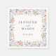 Reveal elegance with our enduring botanical garden wedding paper napkins, adorned with a captivating watercolor meadow flowers and wildflower blooms intertwined in elegant wreaths. Personalized with the names of the bride and groom, these classic floral theme napkins add a distinctive charm to your romantic spring/summer wedding table setting.