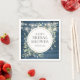 Com luzes bonito de cordas e folhas delicadas de cor d'água verde sobre um fundo azul-rústico de madeira, este guardanapo botânico de chás de panela pode ser personalizado com suas informações especiais sobre o chá de panela. Projetado por Thisnotme©