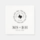 Personalize o modelo com os nomes da noiva e do noivo ou as iniciais do monograma. Adicione sua data de casamento, a cidade, o estado ou o nome do local ou qualquer outro texto personalizado. Esta design moderna rustic ao estilo logotipo tem uma faixa botânica com um mapa do estado do Texas e seu texto personalizado. Use as ferramentas de design para escolher qualquer cor, editar as fontes ou carregar suas próprias fotos para criar guardanapos de casamento completamente personalizados para combinar as cores e o estilo do seu casamento!