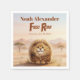 Safari theme first birthday party napkins featuring an original character from the Hystrix Little Thoughts® collection. This design features Zuberi: a charming fluffy leopard character, whose name means “strong” and “powerful,” adding a meaningful and symbolic touch to this “First Roar” birthday. Set in a soft watercolor African safari landscape with warm earth tones, gentle hills, and acacia trees, this invitation creates a sweet and adventurous atmosphere, perfect for a wild one safari party or baby boy first birthday.
