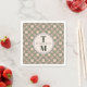 Add a touch of designer elegance to your cocktail hour or reception with these Art Deco-inspired napkins. Featuring a sophisticated sage green and dusty rose palette, these paper napkins showcase a personalized monogram and a stylish geometric pattern. Perfect for weddings, rehearsal dinners, or engagement parties. A chic and practical detail that perfectly matches your modern vintage wedding theme.