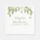 a folhagem elegante deixa o hálito do bebê guardanapo floral de papel de noiva. Personalizado com noiva e nomes de noivos e datas de casamento. Com um belo verde botânico. Um design simples e elegante para sua recepção de casamento, festa de noivado ou qualquer evento de casamento.
