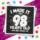 Esta engraçada design de aniversário de 98 anos faz uma piada sarcástica de humor excelente ou um presente de gag novelty para um tema de aniversário de 98 anos ou uma festa de aniversário 98 surpresa! Apresenta 'Eu fiz isso para 98 anos...Nada me assusta' um engraçado meme de aniversário de 98 anos que vai dar muitas risadas da família, amigos, convidados de festas e da cara de aniversário ou da garota também!