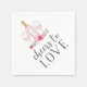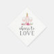 Os bonitos guardanapos personalizados para festas de noivado, jantas de ensaio ou casamentos apresentam uma garrafa de rosé, um par de óculos de vinho, e "aplausos para amar" em tipografia de blocos e scripts. Personalize a garrafa de vinho com as iniciais do casal.
