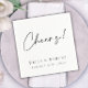 Estes guardanapos 'Cheers!' mínimos são perfeitos para se personalizarem durante uma Recepção de casamento ou hora de cocktail. Os nomes e a data abaixo podem ser editados.
