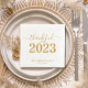 Na moda elegante, entrega de festa de ação de graças! Celebre o dia de graças em estilo com este guardanapo de papel tradicional. Design apresenta "agradecimento por 2023" em tipografia de script dourada em um fundo branco limpo. Personalize este produto adicionando o nome da família ou o texto personalizado. Fácil de personalizar. Feliz Dia de Ação de Graças!