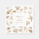 Seashell Wedding Napkins. Único & na moda, este simples guardanapo de casamento de praia moderno apresenta lindos conchas, corais e estrelas pintadas à mão em neutrais de tons de terra organizados como um padrão. O texto é bronzeado e o fundo é branco. Localize itens correspondentes na Coleção de Casamentos de Praia de Watercolor Seashell.