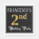Este design de guardanapo de papel de aniversário luxuoso e rico de de aniversário apresenta um nome personalizado e a mensagem "Partido segundo aniversário". O grande número "segundo" tem um padrão de coloração inspirado em imitação/falsa ouro, as palavras "Festa de aniversário" estão no texto estilo script do ornamentado e o plano de fundo é preto por padrão (embora possa ser personalizado). Ornamentado, guardanapos de papel elegantes como este podem ser usados numa comemoração/festa de aniversário em comemoração do segundo aniversário de alguém. [~Z0000565]