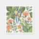 Estes guardanapos apresentam um retrato aquoso de duas araras azuis sentadas em uma esmagadora cena de descanso com flores cor-de-rosa.