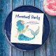 As placas de papel de festa de solteira tema Sereia apresentam uma sereia segurando um coquetel tropical enfeitado com uma flor de hibisco sobre fundo branco limpo, com marinho, turquesa e cor-de-rosa. Perfeito para a praia, náutica, "sob o mar" e celebrações de temas costeiros. Arte por KL Stock