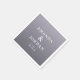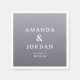 This wedding napkin design features a simple, elegant layout with a gradient background transitioning from light to dark shades of lavender and lilac. The typography is clean and modern, using a serif font for the names "Amanda & Jordan," which are prominently displayed in uppercase letters with an ampersand symbol between them. Below, customizable placeholders indicate location and date, allowing personalization for any event. The overall style is contemporary and understated, conveying a serene and sophisticated mood perfect for weddings or formal celebrations.