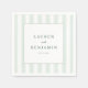 These wedding napkins feature a minimalist and elegant design with vertical stripes in soft shades of mint green and white, creating a serene and fresh atmosphere. The central white square highlights customizable names and date in classic serif typography, adding a touch of sophistication. Perfect for formal occasions, the clean lines and subtle pattern emphasize clarity and focus, making them ideal for weddings that celebrate simplicity and tranquility.