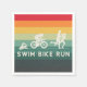 O retro inspirou o guardanapo de coquetel de motivação atlética que mostra os três ícones mais reconhecíveis do evento desportivo sobre o cabeçalho "NATAÇÃO ・ BIKE ・ RUN". Fundo da faixa do arco-íris retrô a negrito. Perfeito para um treinamento de médio ou uma celebração poste.