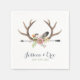 Flores silvestres e penas russas em cor-de-rosa, laranja, amarelo e verde adornam esses galhos e flechas. Você pode personalizar o texto caprichoso com seus próprios detalhes de casamento em tons de cinza azul e verde ou mudar a fonte e a cor.
