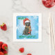 Celebre a temporada de festas com um lindo filhote de Sheepdog belga vestindo um chapéu de Papai Noel e cachecol em meio a uma onda de flocos de neve. Feliz Howlidays!