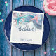 Guardanapos de coquetel com tema de praia apresentam estrelas-do-mar e conchas em aquarela com letras em estilo manuscrito em azul ardósia. Perfeitos para celebrações de casamento, aniversário e chá de bebê com tema costeiro e náutico. Arte por KL Stock