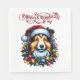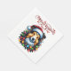Um guardanapo de papel festivo com um cão alegre a vestir um chapéu de Papai Noel ou galhadas de renas, rodeado por decorações de férias como presentes e flocos de neve, acrescentando um toque alegre e animador à sua celebração de Natal.