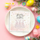Celebre a Páscoa com elegância usando nossos guardanapos de Silhueta Coelhinho-Rosa. Perfeito para suas reuniões festivas, esses guardanapos apresentam belos coelhos encantadores adornados com delicados arcos cor-de-rosa contra um pano de fundo de estrelas ouros. Personalize-os com seu nome de família para um toque exclusivo. Ideal para adicionar um toque de sofisticação à sua mesa Páscoa. Ordene hoje que faça sua celebração realmente especial!