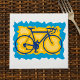 Este design é um símbolo de bicicleta. A bicicleta está sobre fundo amarelo e azul. Este símbolo de bicicleta design parece excelente neste Papel Napkins