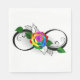 símbolo infinito com rosa arco-íris sobre fundo branco.