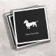 Design de Dachshund básico - silhueta branca, cor de fundo personalizável e textos. Adicione o nome do seu cachorro ou qualquer outra mensagem que você queira!