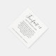 Este guardanapo 'coquetel' número 1, simples, moderno e criativo, divertindo-se, vai divertir seu convidado recepção de casamento com informações interessantes sobre sua história de amor e personalidades. O design preto-e-branco apresenta um script de caligrafia com letra manuscrita e uma fonte na moda serif. Há mais 4 guardanapos de fatos divertidos nesta série. Se você prefere escrever todos os seus fatos divertidos em um guardanapo, minha loja inclui produtos que listam cinco fatos divertidos em um guardanapo. Se você precisar de assistência para personalizar este produto ou quiser que eu crie itens adicionais correspondentes, entre em contato comigo em admin@albamarie.com. Eu ficaria feliz em ajudar!