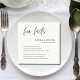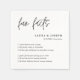 Torne a celebração do seu casamento ainda mais memorável com nosso Simples Roteiro Preto e Brancos Fatos de Casamento Napkins. Projetados para elegância e charme, esses guardanapos são perfeitos para horas de coquetel, recepções ou chás de panela. Apresentando um design de script minimalista, eles oferecem uma maneira divertida e personalizada de compartilhar detalhes interessantes sobre o casal com convidados. Ideal para temas modernos, tradicionais ou quentes de casamento, esses guardanapos adicionam um toque na moda, mas funcional, ao seu dia especial. Personalizável para refletir sua história única, eles são um excelente adicional a qualquer evento de casamento, de encontros íntimos a grandes celebrações.