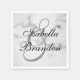 Este é simplesmente um guardanapo perfeito, acentuado com os nomes da noiva e do noivo num fundo clássico de mármore carrara, que é fácil de personalizar.