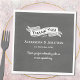 Simples e saboroso guardanapos de casamento rústicos em cinzas de ardósias e gráficos no estilo giz branco e letras. Design com nomes de casal e data de casamento e uma mensagem de obrigado. O texto está formatado e pronto para ser editado no botão fácil "Personalizar este modelo". Coordena o convite para o casamento, o programa de casamento, o guia, o obrigado que você cola e toda a coleção de artigos de casamento em www.zazzle.com/monogramsandmonikers