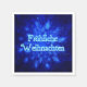 Um enxame de flocos de neve fractais azuis. O texto alemão que lê "Froliche Weihnachten" aparece em azul e branco brilhantes.