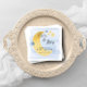 Esta design neutra de gênero apresenta uma lua e estrelas contra um fundo de aquarela e sua personalização.