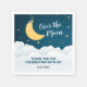 Uma lua crescente está amarrada com cordas contra um céu noturno acima de nuvens brancas lisas. As estrelas ouros salpicam o fundo do céu noturno do cobalto para acolher convidados para um chá de fraldas sobre a lua. Unisex e versátil para qualquer celebração de bebês seja um chá de fraldas, um bebê aspersor, ou um gole e veja. Disponível com produtos correspondentes.