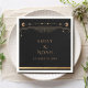 As estrelas Douradas místicas da Lua Negra Sol Casando Napkins apresentam um sol ouro, lua e estrelas sobre um fundo negro com seus nomes e data de casamento abaixo em um roteiro de caligrafia dourada moderno. Personalize editando o texto nas caixas de texto fornecidas. Projetado para você pelo Evco Studio www.zazzle.com/store/evcostudio