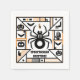Este design de Halloween ao estilo Bauhaus moderno apresenta uma ilustração ousada de aranha escura e branca, enquadrada por elementos assustadores como morcegos, abóboras e mãos esqueléticas. Uma na moda de mistura de minimalismo e medo festivo para as suas comemorações de outubro.