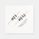 Um design minimalista em preto e branco. Basta clicar no link personalizar mais, mostrado na área de personalização de texto à direita, e escolher a cor dos guardanapos. Este modelo torna rápido e fácil criar acréscimos incríveis à decoração do casamento.