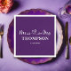 Dê à sua recepção de casamento um pouco de elegância com o Sr. e a Sra. Elegante Simple | Napkins roxo, personalizado com seu nome de família e data de casamento.