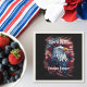 Mostre seu patriotismo em estilo. Esta design apresenta uma águia careca cercada por rosas vermelhas em frente a uma bandeira americana. Adequado para o 4 de julho, Independência ou Dia do Presidente, ou qualquer feriado nacional.