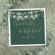 Com bonito luzes de cordas e nomes de estilo de assinatura, esses elegantes guardanapos esmeraldas verdes e dourados podem ser personalizados com seus detalhes de casamento em letra chic. Projetado por Thisnotme©