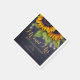 Escrito de tipografia de ouro russo O Sr. e a Sra. guardanapos de papel personalizado do casamento apresentando um belo buquê de girassóis e cordas de luzes cintilantes em fundo azul-marinho escuro da meia-noite. Ideal para sua noite de verão ou outono | elegante país russo | casamentos temáticos no quintal exterior, obras de renovação ou aniversários.