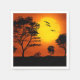 Linda arte digital Cena do pôr do sol africano com árvores, pássaros e estrelas.