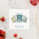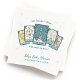 This tarot themed baby shower napkin features a five-card spread with hand-drawn illustrations of The Sun, The Star, The Baby, The Moon, and The Chariot, each reimagined with sweet baby motifs like a rattle, bottle, and carriage. The message reads “The future is clear... the baby will soon be here,” with space below to personalize the event name and date. Light twinkles and star accents in the background add a magical touch to your table setting. A perfect match for celestial baby shower invitations, magical baby shower aesthetic, tarot inspired showers, and Halloween baby shower ideas. Designed to coordinate with other items in the tarot baby shower collection.