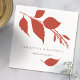 Celebre seu dia especial com esses guardanapos personalizados, parte da coleção de quedas de Do Diga A Belle. Projetados com folhas botânicas de outono e sotaque laranja queimado por solteiro, esses modelos são perfeitos para o tema do casamento, paleta laranja ou cores de casamento outono. Personalize-os com os seus nomes e data do evento ou ajuste as cores da folha para corresponder às suas paletas de cores de outubro. Ideal para casamentos rústicos, para ensaiar guardanapos jantes, ou celebrações de casamento aconchegantes no outono. Uma escolha na moda para os casamentos de setembro, outubro e novembro. Conheça mais designs sazonais em www.zazzle.com/dotellabelle.