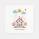 Esta encantadora ilustración captura la esencia de la felicidad y la calidez. La imagen muestra una pequeña casa blanca con detalles rojos, rodeada por árboles con hojas en forma de corazón y flores amarillas que dan vida al paisaje. Sobre el tejado, un perro sonriente observa la escena, mientras que en el cielo, un sol radiante y sonriente derrama luz sobre todo.
