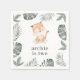Um doce tigre de aquarela com folhas verdes ao longo dos lados. Perfeito para a sua Festa de aniversário temida do tigre!