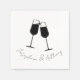 Taças de champanhe preto e branco brindam com guardanapos. Design de copos tilintando em preto e branco com texto ligeiramente curvo abaixo dos copos. Perfeito para um chá de noiva ou recepção de tema neutro. Também use na véspera de Ano Novo ou em qualquer celebração.